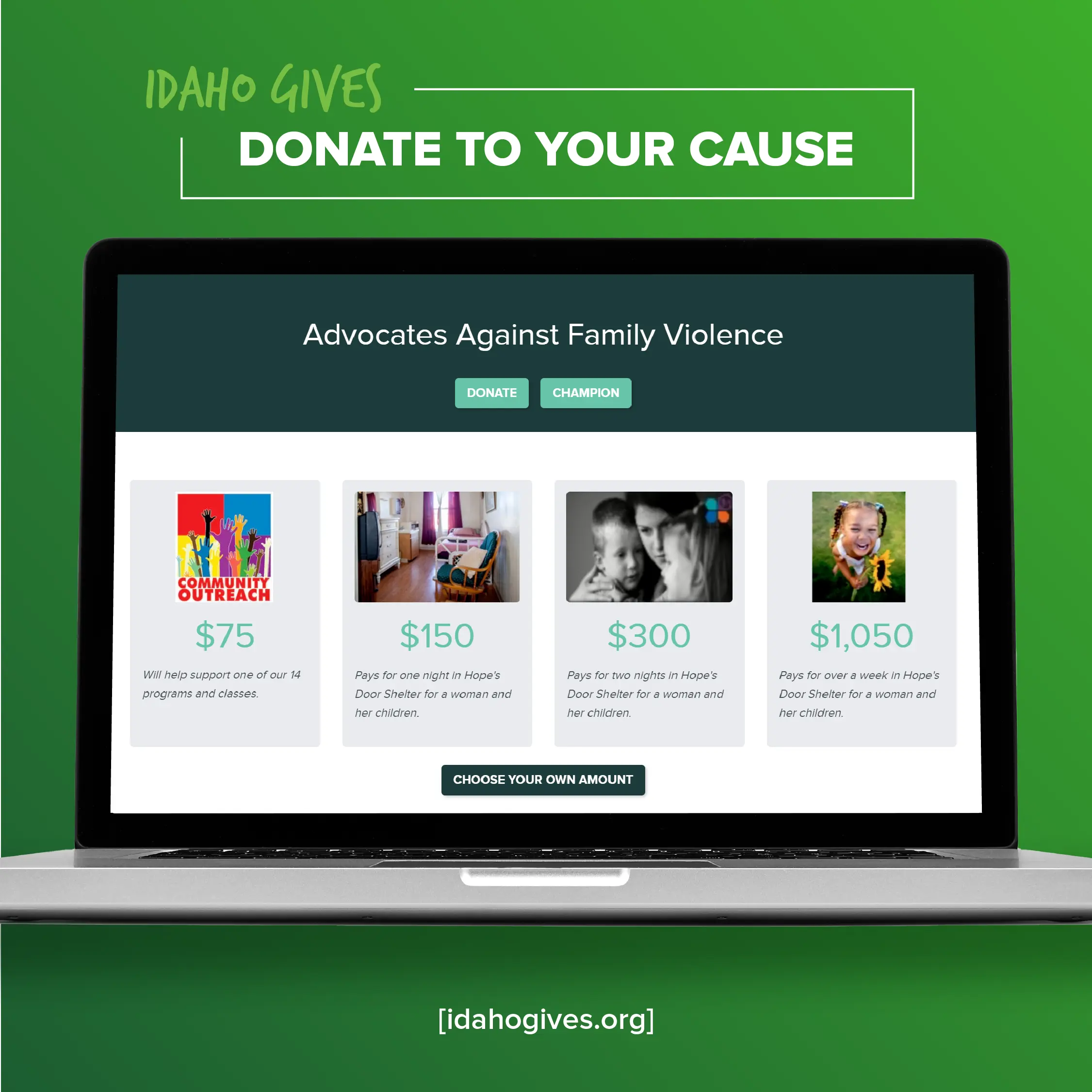 - Visit the Idaho Gives website and search for a nonprofit that aligns with your passions or location.