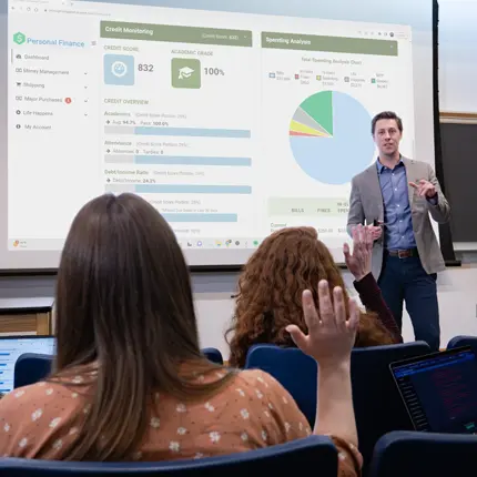 But to understand the magnitude of that, you need to know what sets the Stukent courseware apart from other economics classes. The course, called Mimic Personal Finance (MPF), is centered around mimic software, which guides students through real-world finance scenarios.