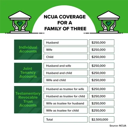 In other words, a member with a single-ownership account (like an individual checking account) has coverage for $250,000. A member who has deposits in an individual checking and joint checking account has coverage for $500,000.