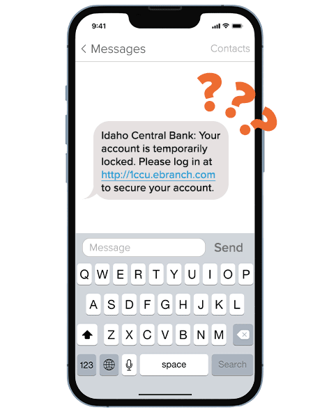 Financial institutions are seeing increased attempts to gain member account information through text scams, phone calls, and email phishing attempts. ICCU will never contact you and request you to provide secure or personal account information such as usernames, passwords, security codes, social security numbers, or any other information pertaining to your account security. Please contact us if you have questions or concerns about a text, phone call, or email.