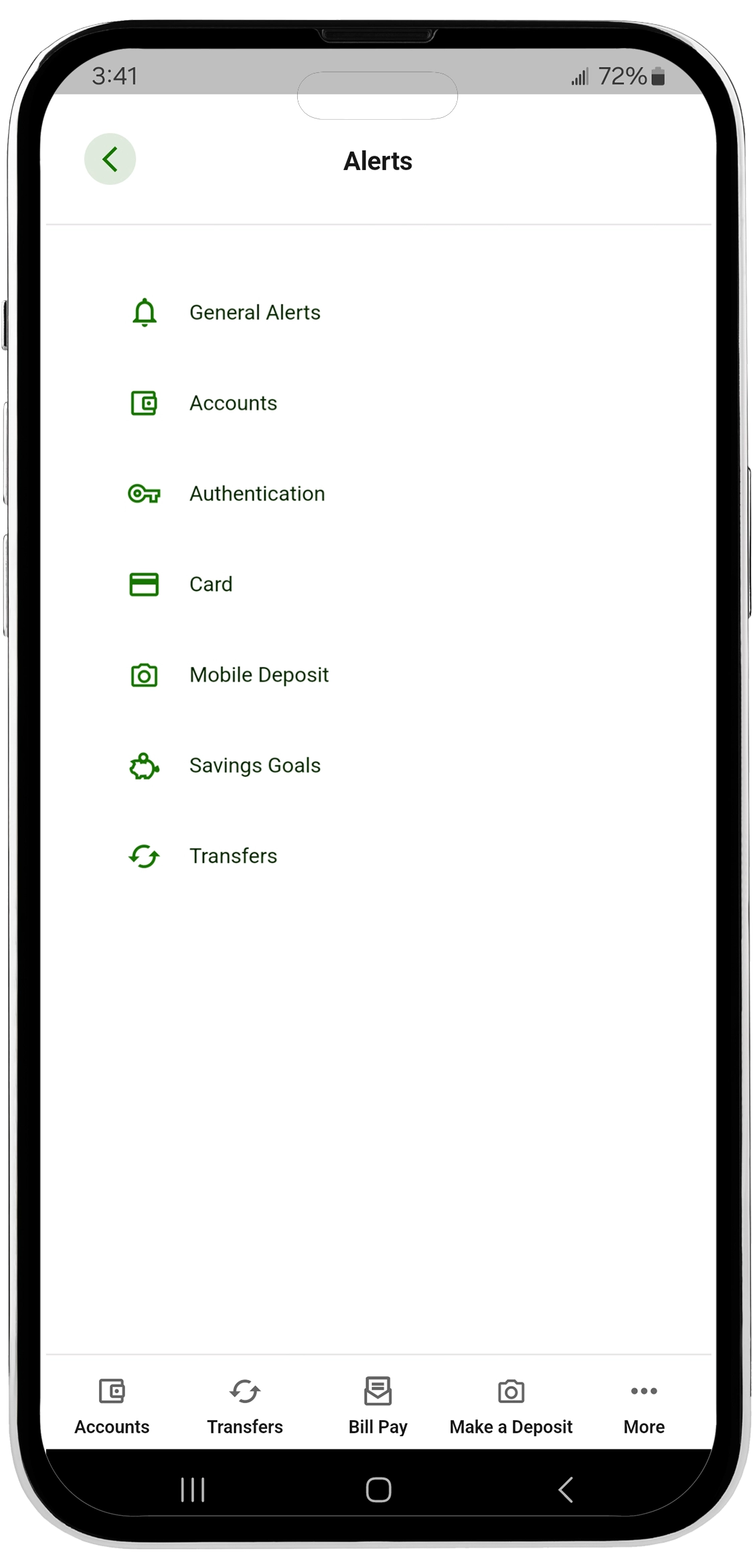 Protecting your account is vital and our alerts increase security by notifying you of withdrawals, transfers, balances, purchases, direct deposits, and more. You can even make your money work for you by setting up savings goals and being notified of your financial success so you can celebrate when you reach them. Monitor your account your way by setting up our easy and efficient account alerts today!